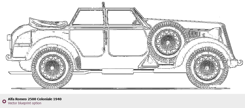 Raster blueprint of the 1940 Alfa Romeo 2500 Coloniale Tag. This free downloadable image can be used for graphic projects, digital design, and 3D modeling. The file provides accurate exterior proportions of the vehicle. Model year: 1940. Body type: Tag.