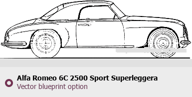 Raster blueprint of the 1951 Alfa Romeo 6C 2500 Sport Superleggera Cabrio Cabriolet. This free downloadable image can be used for graphic projects, digital design, and 3D modeling. The file provides accurate exterior proportions of the vehicle. Model year: 1951. Body type: Cabriolet.