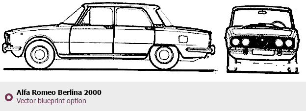 Raster blueprint of the 2000 Alfa Romeo Berlina Sedan. This free downloadable image can be used for graphic projects, digital design, and 3D modeling. The file provides accurate exterior proportions of the vehicle. Model year: 2000. Body type: Sedan.