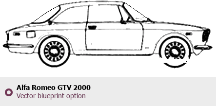 Raster blueprint of the 2000 Alfa Romeo GTV Coupe. This free downloadable image can be used for graphic projects, digital design, and 3D modeling. The file provides accurate exterior proportions of the vehicle. Model year: 2000. Body type: Coupe.
