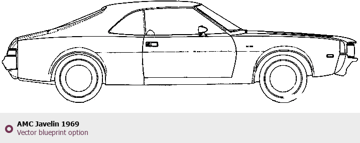 Raster blueprint of the 1969 AMC Javelin Tag. This free downloadable image can be used for graphic projects, digital design, and 3D modeling. The file provides accurate exterior proportions of the vehicle. Model year: 1969. Body type: Tag.