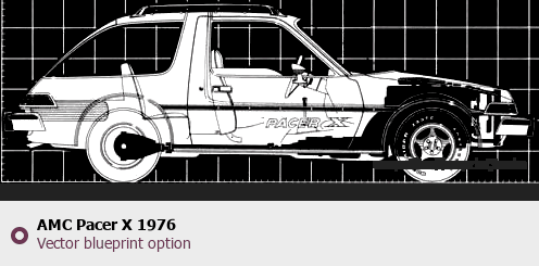 Raster blueprint of the 1976 AMC Pacer X Tag. This free downloadable image can be used for graphic projects, digital design, and 3D modeling. The file provides accurate exterior proportions of the vehicle. Model year: 1976. Body type: Tag.