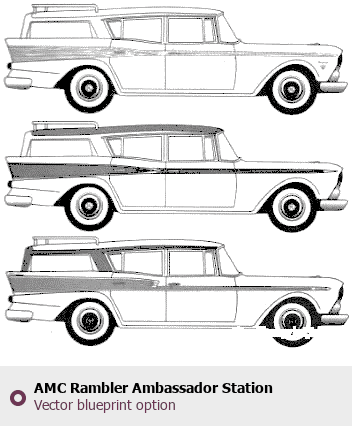Raster blueprint of the 1959 AMC Rambler Ambassador Station Wagon Wagon. This free downloadable image can be used for graphic projects, digital design, and 3D modeling. The file provides accurate exterior proportions of the vehicle. Model year: 1959. Body type: Wagon.