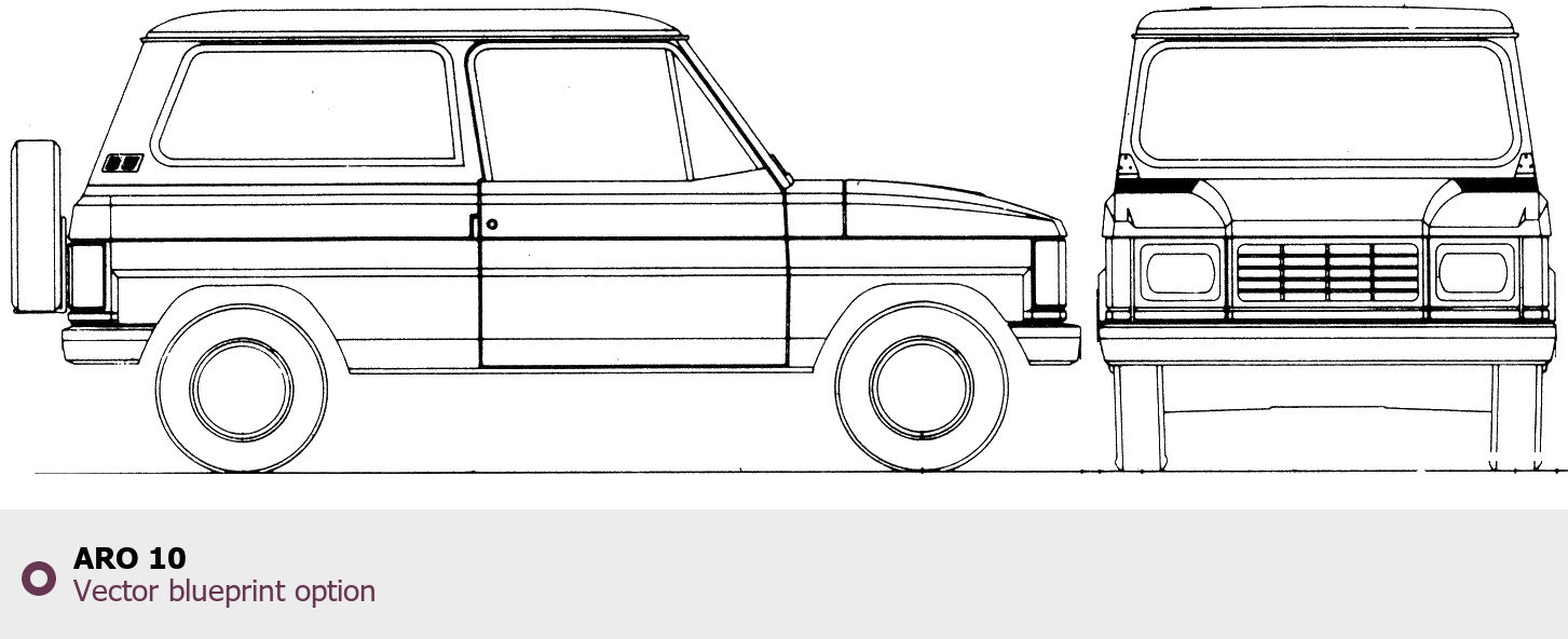 Raster blueprint of the ARO 10 Tag. This free downloadable image can be used for graphic projects, digital design, and 3D modeling. The file provides accurate exterior proportions of the vehicle. Body type: Tag.
