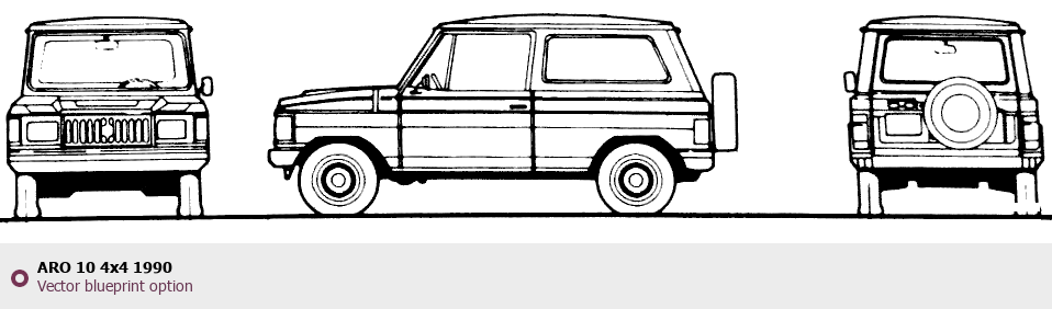 Raster blueprint of the 1990 ARO 10 4x4 Tag. This free downloadable image can be used for graphic projects, digital design, and 3D modeling. The file provides accurate exterior proportions of the vehicle. Model year: 1990. Body type: Tag.