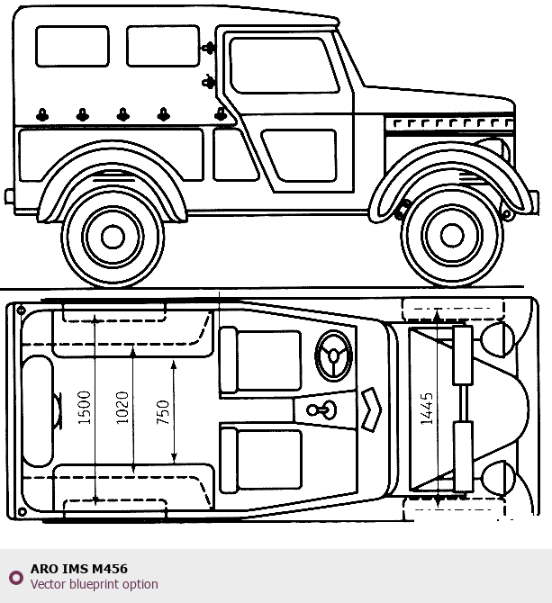 Raster blueprint of the ARO IMS M456 Tag. This free downloadable image can be used for graphic projects, digital design, and 3D modeling. The file provides accurate exterior proportions of the vehicle. Body type: Tag.