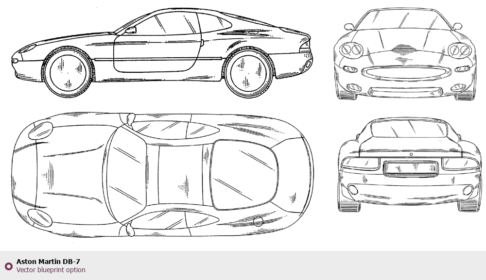 Raster blueprint of the Aston Martin DB-7 Tag. This free downloadable image can be used for graphic projects, digital design, and 3D modeling. The file provides accurate exterior proportions of the vehicle. Body type: Tag.
