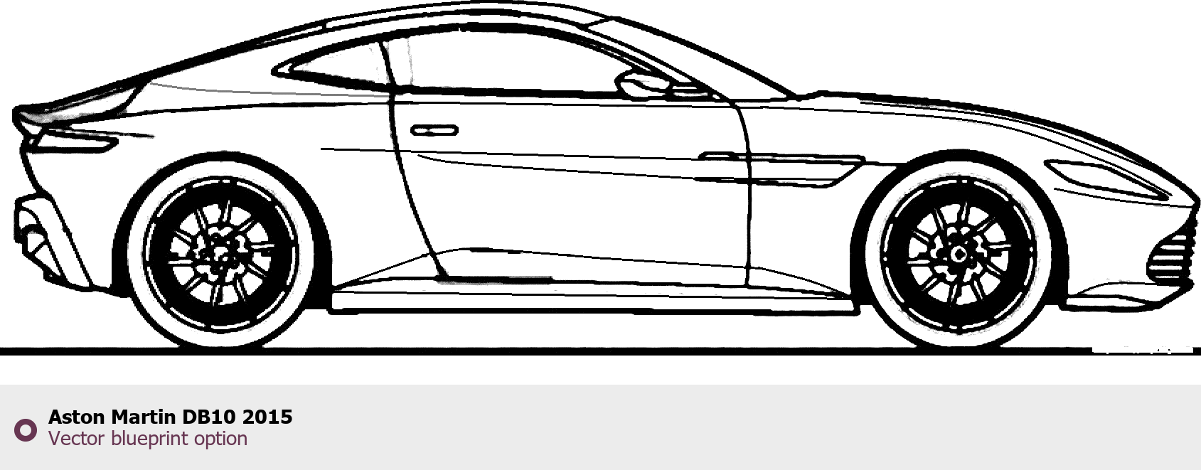 Raster blueprint of the 2015 Aston Martin DB10 Tag. This free downloadable image can be used for graphic projects, digital design, and 3D modeling. The file provides accurate exterior proportions of the vehicle. Model year: 2015. Body type: Tag.