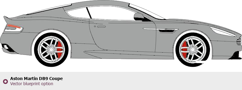 Raster blueprint of the Aston Martin DB9 Coupe Coupe. This free downloadable image can be used for graphic projects, digital design, and 3D modeling. The file provides accurate exterior proportions of the vehicle. Body type: Coupe.