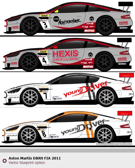 Raster blueprint of the 2011 Aston Martin DBR9 FIA Tag. This free downloadable image can be used for graphic projects, digital design, and 3D modeling. The file provides accurate exterior proportions of the vehicle. Model year: 2011. Body type: Tag.