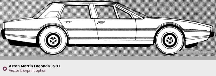 Raster blueprint of the 1981 Aston Martin Lagonda Tag. This free downloadable image can be used for graphic projects, digital design, and 3D modeling. The file provides accurate exterior proportions of the vehicle. Model year: 1981. Body type: Tag.