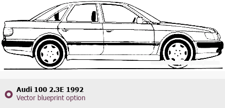 Raster blueprint of the 1992 Audi 100 2.3E Tag. This free downloadable image can be used for graphic projects, digital design, and 3D modeling. The file provides accurate exterior proportions of the vehicle. Model year: 1992. Body type: Tag.