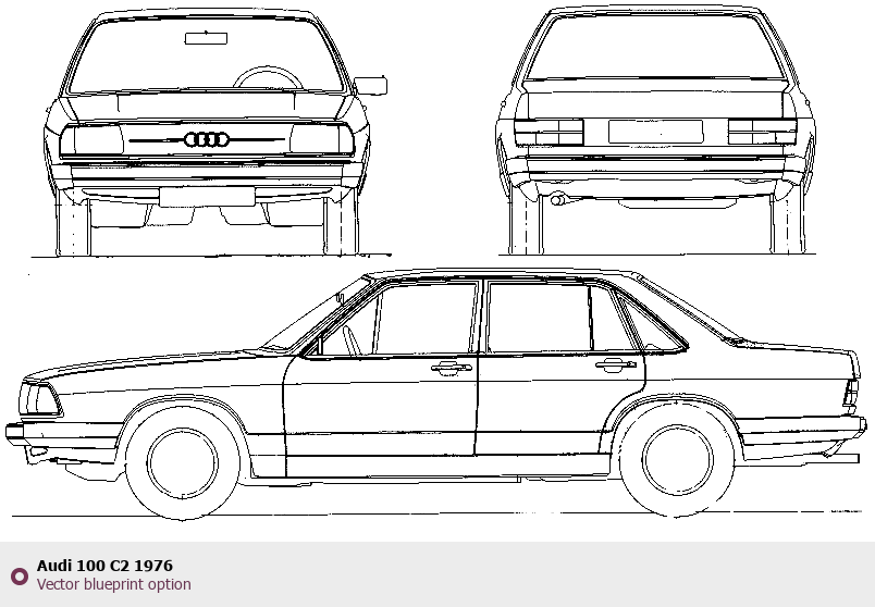 Raster blueprint of the 1976 Audi 100 C2 Tag. This free downloadable image can be used for graphic projects, digital design, and 3D modeling. The file provides accurate exterior proportions of the vehicle. Model year: 1976. Body type: Tag.