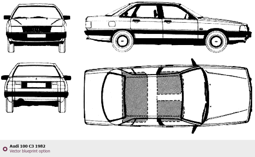 Raster blueprint of the 1982 Audi 100 C3 Tag. This free downloadable image can be used for graphic projects, digital design, and 3D modeling. The file provides accurate exterior proportions of the vehicle. Model year: 1982. Body type: Tag.