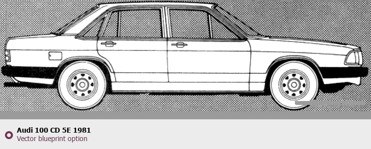 Raster blueprint of the 1981 Audi 100 CD 5E Tag. This free downloadable image can be used for graphic projects, digital design, and 3D modeling. The file provides accurate exterior proportions of the vehicle. Model year: 1981. Body type: Tag.