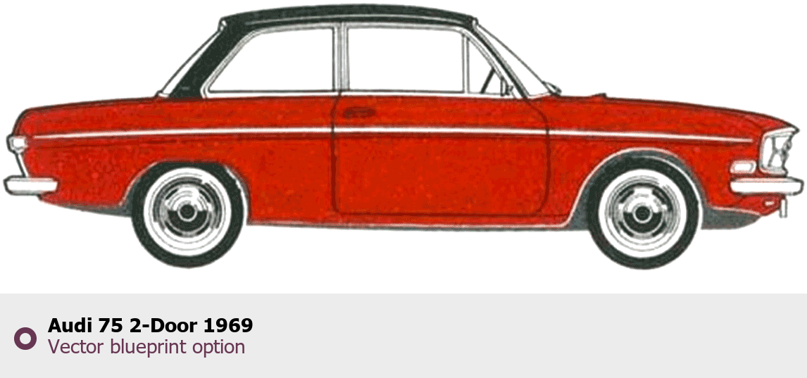 Raster blueprint of the 1969 Audi 75 2-Door Tag. This free downloadable image can be used for graphic projects, digital design, and 3D modeling. The file provides accurate exterior proportions of the vehicle. Model year: 1969. Body type: Tag.