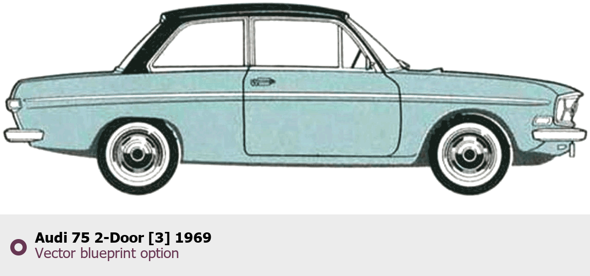 Raster blueprint of the 1969 Audi 75 2-Door [3] Tag. This free downloadable image can be used for graphic projects, digital design, and 3D modeling. The file provides accurate exterior proportions of the vehicle. Model year: 1969. Body type: Tag.
