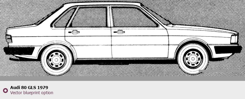 Raster blueprint of the 1979 Audi 80 GLS Tag. This free downloadable image can be used for graphic projects, digital design, and 3D modeling. The file provides accurate exterior proportions of the vehicle. Model year: 1979. Body type: Tag.