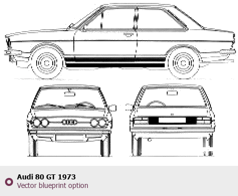 Raster blueprint of the 1973 Audi 80 GT Tag. This free downloadable image can be used for graphic projects, digital design, and 3D modeling. The file provides accurate exterior proportions of the vehicle. Model year: 1973. Body type: Tag.
