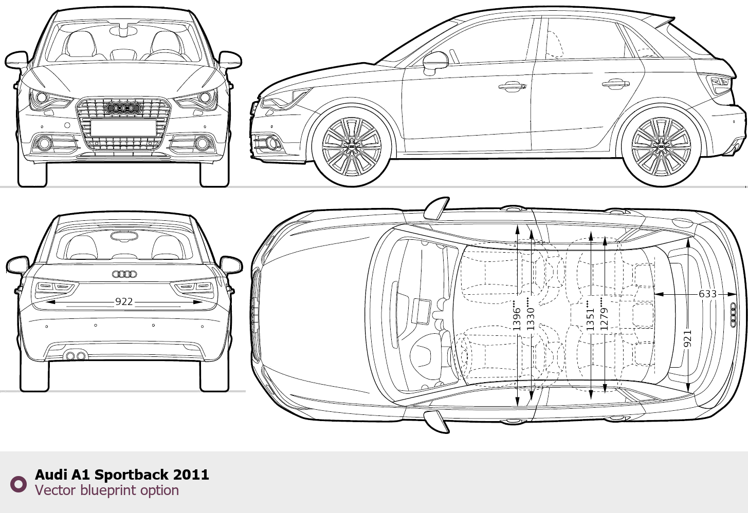 Raster blueprint of the 2011 Audi A1 Sportback Hatchback. This free downloadable image can be used for graphic projects, digital design, and 3D modeling. The file provides accurate exterior proportions of the vehicle. Model year: 2011. Body type: Hatchback.