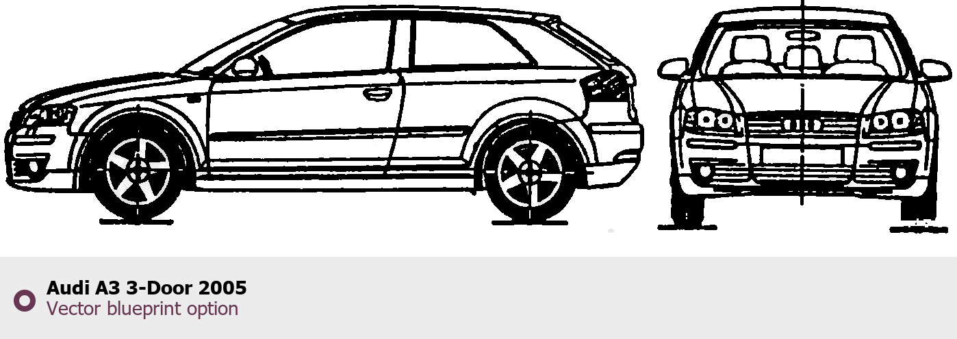 Raster blueprint of the 2005 Audi A3 3-Door Tag. This free downloadable image can be used for graphic projects, digital design, and 3D modeling. The file provides accurate exterior proportions of the vehicle. Model year: 2005. Body type: Tag.