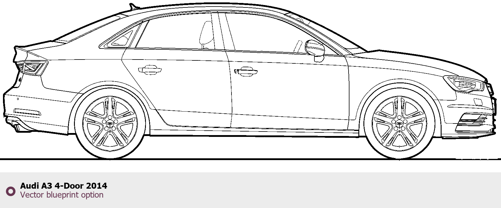 Raster blueprint of the 2014 Audi A3 4-Door Tag. This free downloadable image can be used for graphic projects, digital design, and 3D modeling. The file provides accurate exterior proportions of the vehicle. Model year: 2014. Body type: Tag.