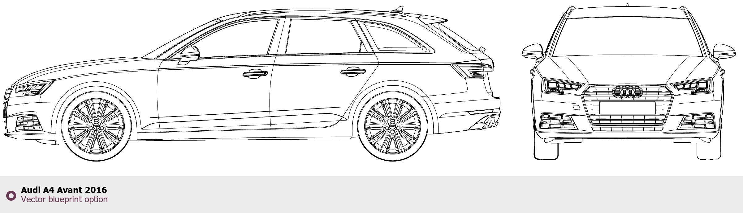 Raster blueprint of the 2016 Audi A4 Avant Tag. This free downloadable image can be used for graphic projects, digital design, and 3D modeling. The file provides accurate exterior proportions of the vehicle. Model year: 2016. Body type: Tag.