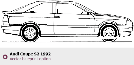 Raster blueprint of the 1992 Audi Coupe S2 Coupe. This free downloadable image can be used for graphic projects, digital design, and 3D modeling. The file provides accurate exterior proportions of the vehicle. Model year: 1992. Body type: Coupe.