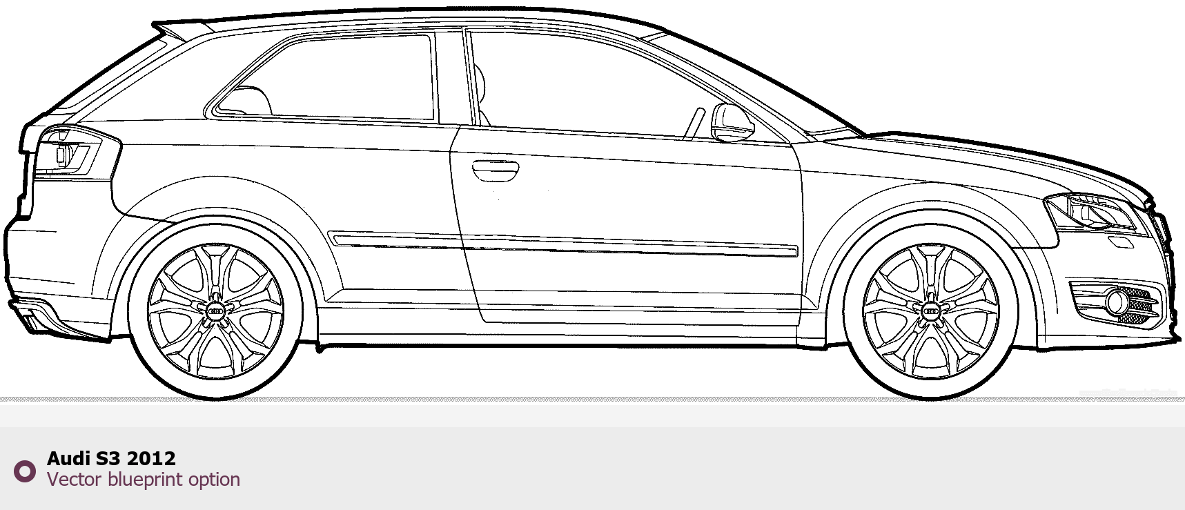 Raster blueprint of the 2012 Audi S3 Tag. This free downloadable image can be used for graphic projects, digital design, and 3D modeling. The file provides accurate exterior proportions of the vehicle. Model year: 2012. Body type: Tag.