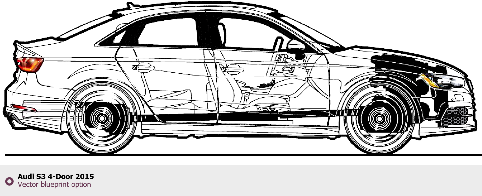 Raster blueprint of the 2015 Audi S3 4-Door Tag. This free downloadable image can be used for graphic projects, digital design, and 3D modeling. The file provides accurate exterior proportions of the vehicle. Model year: 2015. Body type: Tag.