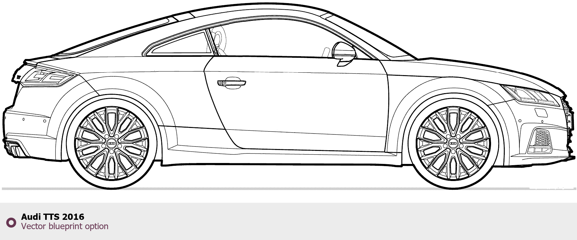 Raster blueprint of the 2016 Audi TTS Tag. This free downloadable image can be used for graphic projects, digital design, and 3D modeling. The file provides accurate exterior proportions of the vehicle. Model year: 2016. Body type: Tag.