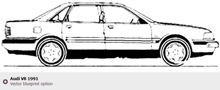 Raster blueprint of the 1991 Audi V8 Tag. This free downloadable image can be used for graphic projects, digital design, and 3D modeling. The file provides accurate exterior proportions of the vehicle. Model year: 1991. Body type: Tag.