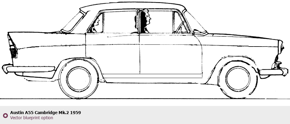 Raster blueprint of the 1959 Austin A55 Cambridge Mk.2 Tag. This free downloadable image can be used for graphic projects, digital design, and 3D modeling. The file provides accurate exterior proportions of the vehicle. Model year: 1959. Body type: Tag.