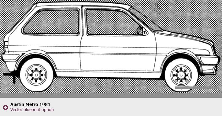 Raster blueprint of the 1981 Austin Metro Tag. This free downloadable image can be used for graphic projects, digital design, and 3D modeling. The file provides accurate exterior proportions of the vehicle. Model year: 1981. Body type: Tag.