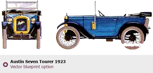 Raster blueprint of the 1923 Austin Seven Tourer Tag. This free downloadable image can be used for graphic projects, digital design, and 3D modeling. The file provides accurate exterior proportions of the vehicle. Model year: 1923. Body type: Tag.