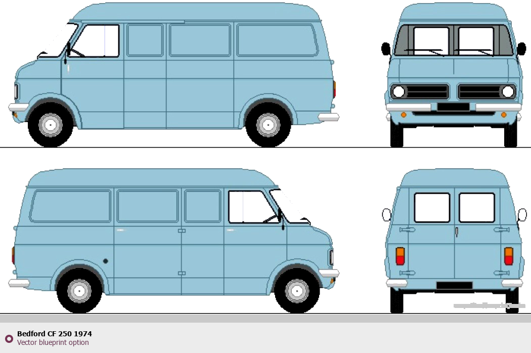Raster blueprint of the 1974 Bedford CF 250 Tag. This free downloadable image can be used for graphic projects, digital design, and 3D modeling. The file provides accurate exterior proportions of the vehicle. Model year: 1974. Body type: Tag.