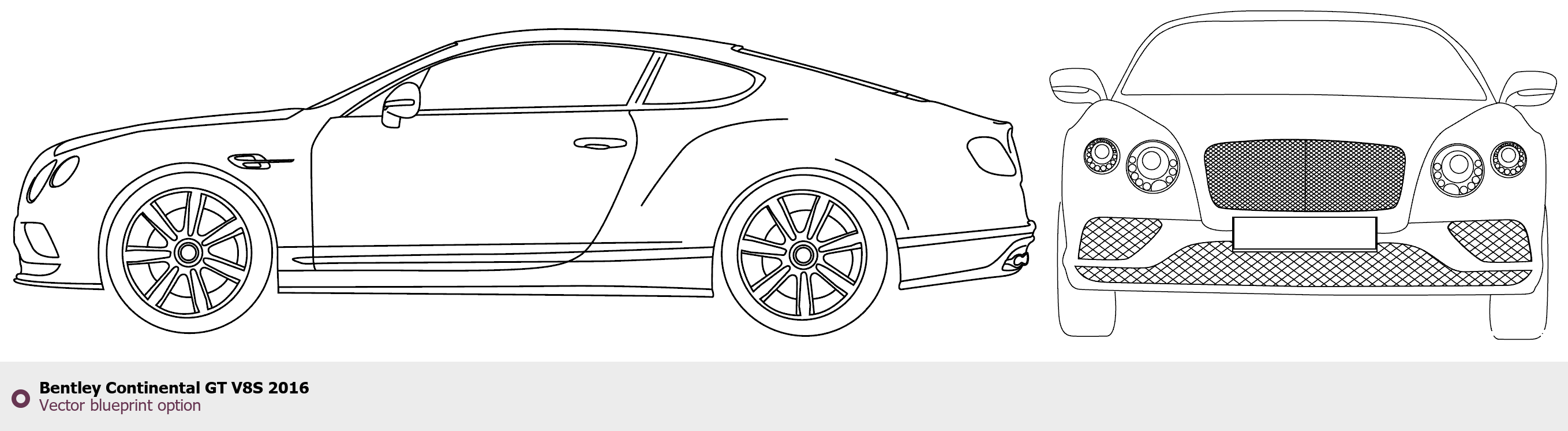 Raster blueprint of the 2016 Bentley Continental GT V8S Tag. This free downloadable image can be used for graphic projects, digital design, and 3D modeling. The file provides accurate exterior proportions of the vehicle. Model year: 2016. Body type: Tag.