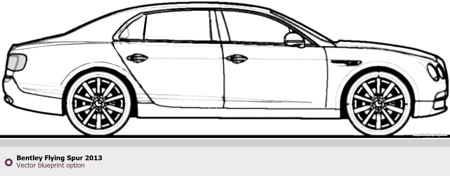 Raster blueprint of the 2013 Bentley Flying Spur Tag. This free downloadable image can be used for graphic projects, digital design, and 3D modeling. The file provides accurate exterior proportions of the vehicle. Model year: 2013. Body type: Tag.