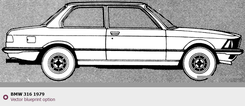 Raster blueprint of the 1979 BMW 316 Tag. This free downloadable image can be used for graphic projects, digital design, and 3D modeling. The file provides accurate exterior proportions of the vehicle. Model year: 1979. Body type: Tag.