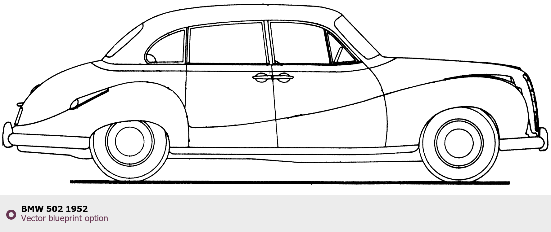 Raster blueprint of the 1952 BMW 502 Tag. This free downloadable image can be used for graphic projects, digital design, and 3D modeling. The file provides accurate exterior proportions of the vehicle. Model year: 1952. Body type: Tag.