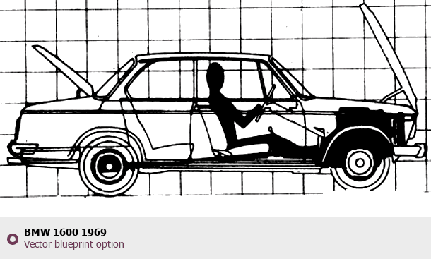 Raster blueprint of the 1969 BMW 1600 Tag. This free downloadable image can be used for graphic projects, digital design, and 3D modeling. The file provides accurate exterior proportions of the vehicle. Model year: 1969. Body type: Tag.