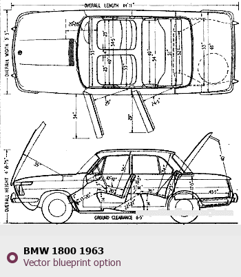 Raster blueprint of the 1963 BMW 1800 Tag. This free downloadable image can be used for graphic projects, digital design, and 3D modeling. The file provides accurate exterior proportions of the vehicle. Model year: 1963. Body type: Tag.