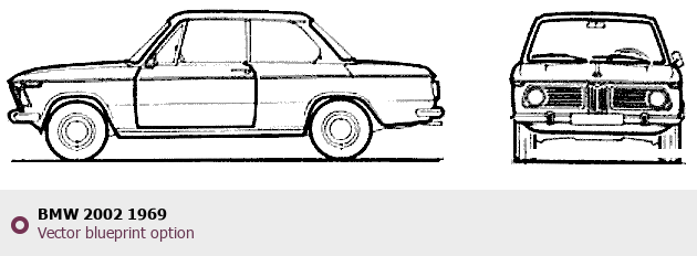 Raster blueprint of the 1969 BMW 2002 Sedan. This free downloadable image can be used for graphic projects, digital design, and 3D modeling. The file provides accurate exterior proportions of the vehicle. Model year: 1969. Body type: Sedan.