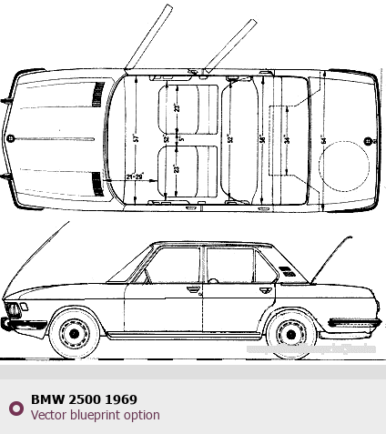 Raster blueprint of the 1969 BMW 2500 Tag. This free downloadable image can be used for graphic projects, digital design, and 3D modeling. The file provides accurate exterior proportions of the vehicle. Model year: 1969. Body type: Tag.