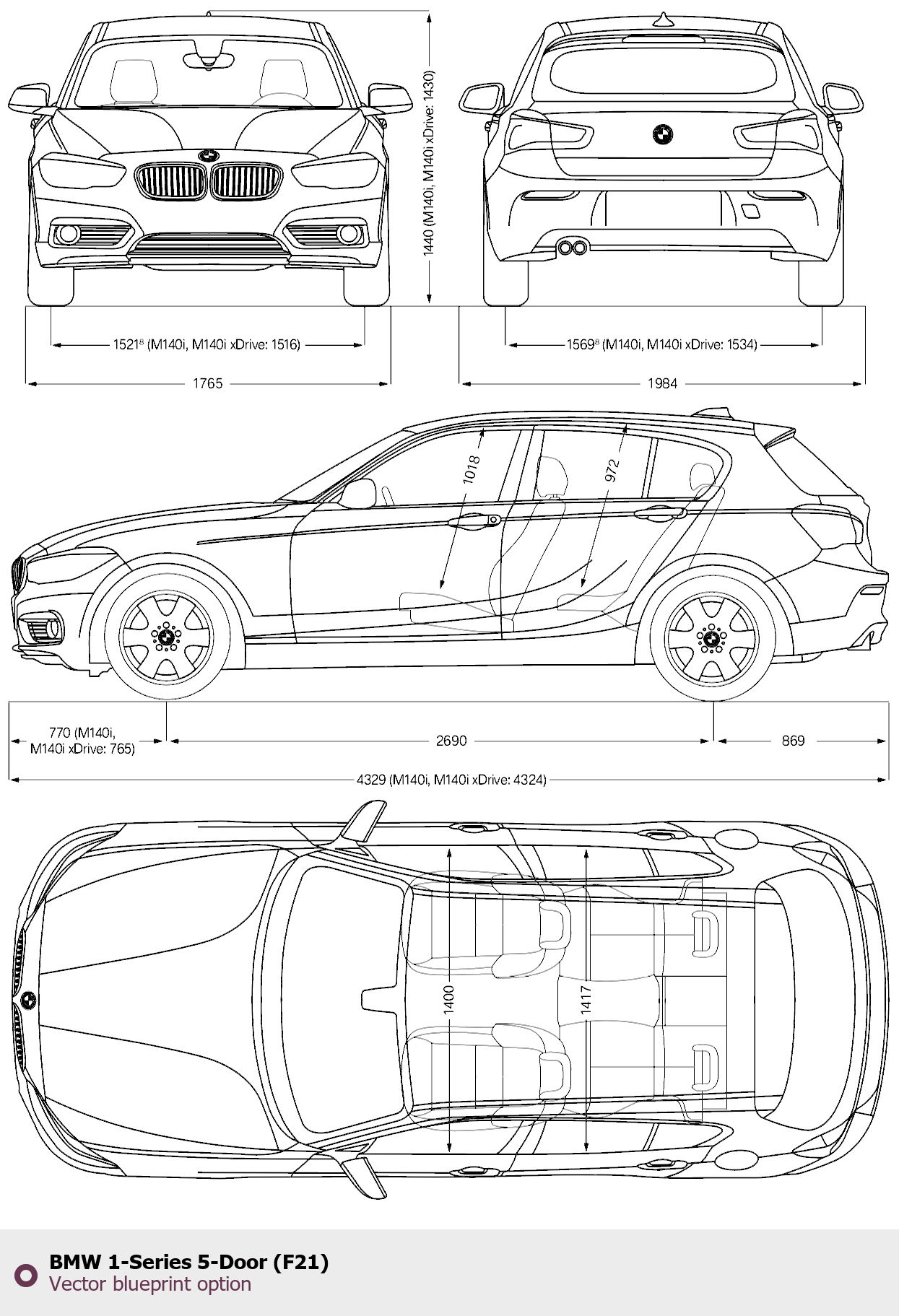 Raster blueprint of the BMW 1-Series 5-Door (F21) Tag. This free downloadable image can be used for graphic projects, digital design, and 3D modeling. The file provides accurate exterior proportions of the vehicle. Body type: Tag.