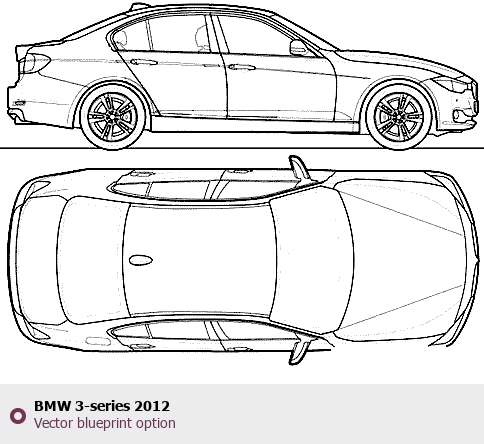 Raster blueprint of the 2012 BMW 3-series Tag. This free downloadable image can be used for graphic projects, digital design, and 3D modeling. The file provides accurate exterior proportions of the vehicle. Model year: 2012. Body type: Tag.