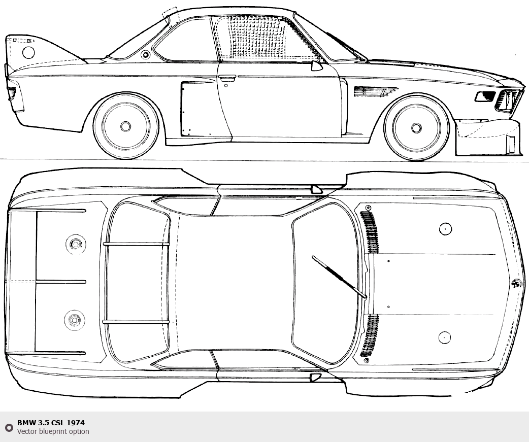 Raster blueprint of the 1974 BMW 3.5 CSL Tag. This free downloadable image can be used for graphic projects, digital design, and 3D modeling. The file provides accurate exterior proportions of the vehicle. Model year: 1974. Body type: Tag.