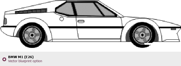 Raster blueprint of the BMW M1 (E26) Tag. This free downloadable image can be used for graphic projects, digital design, and 3D modeling. The file provides accurate exterior proportions of the vehicle. Body type: Tag.