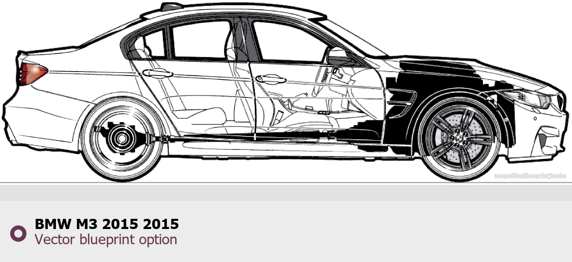 Raster blueprint of the 2015 BMW M3 2015 Tag. This free downloadable image can be used for graphic projects, digital design, and 3D modeling. The file provides accurate exterior proportions of the vehicle. Model year: 2015. Body type: Tag.