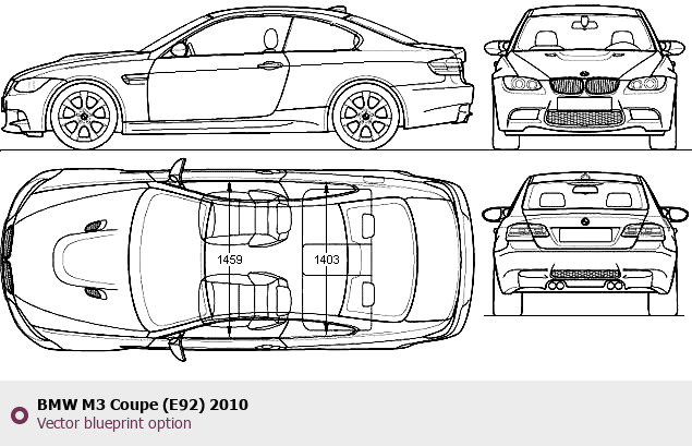 Raster blueprint of the 2010 BMW M3 Coupe (E92) Coupe. This free downloadable image can be used for graphic projects, digital design, and 3D modeling. The file provides accurate exterior proportions of the vehicle. Model year: 2010. Body type: Coupe.